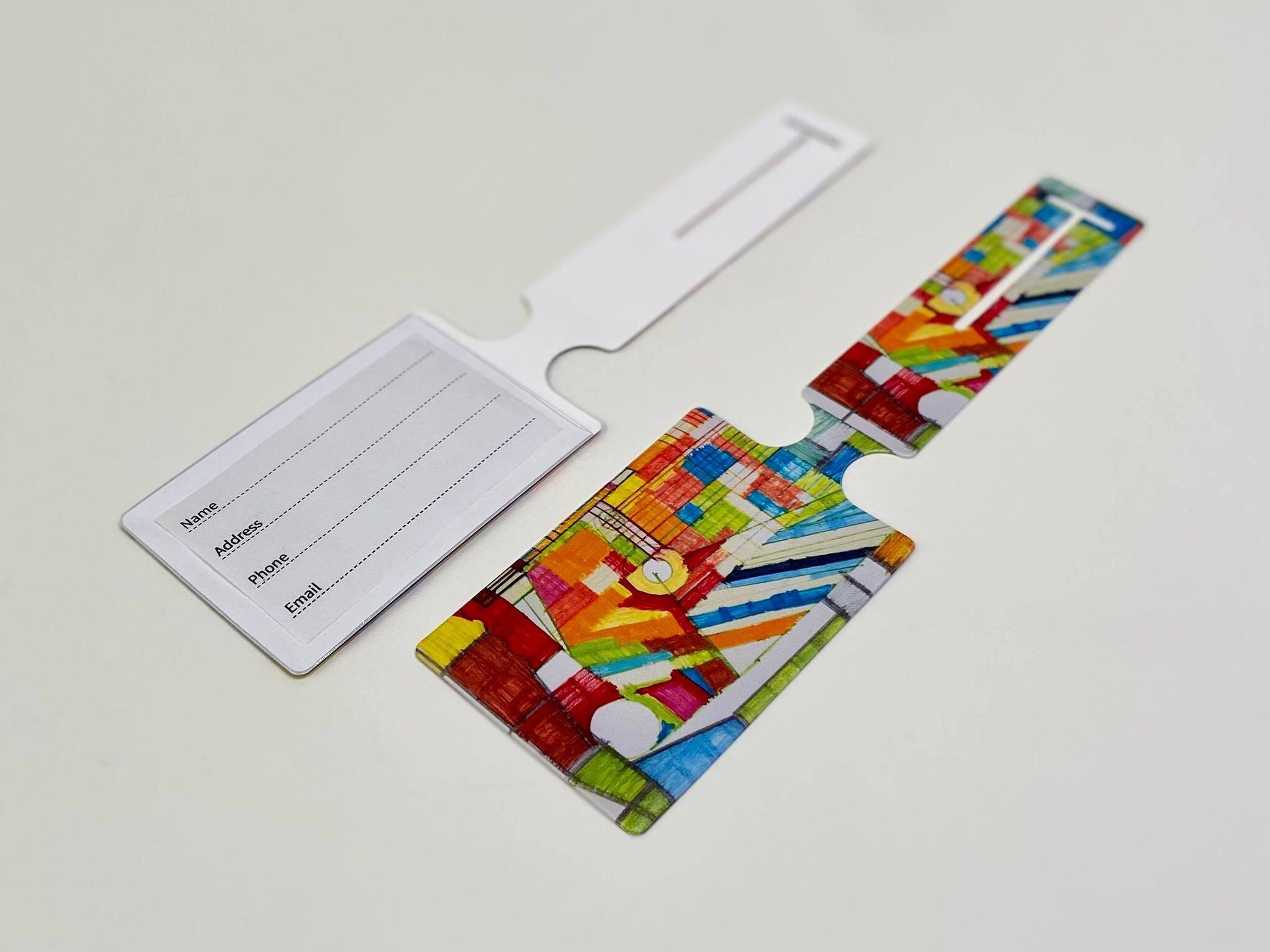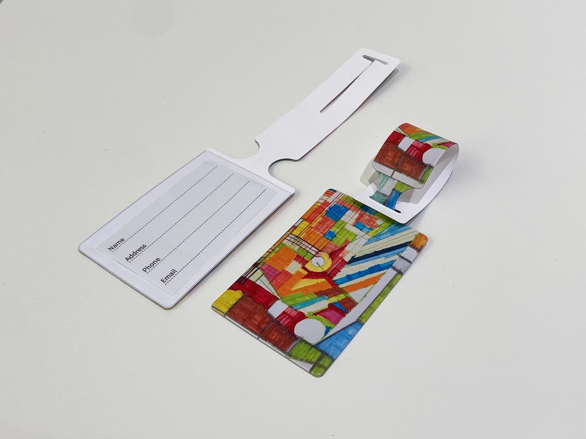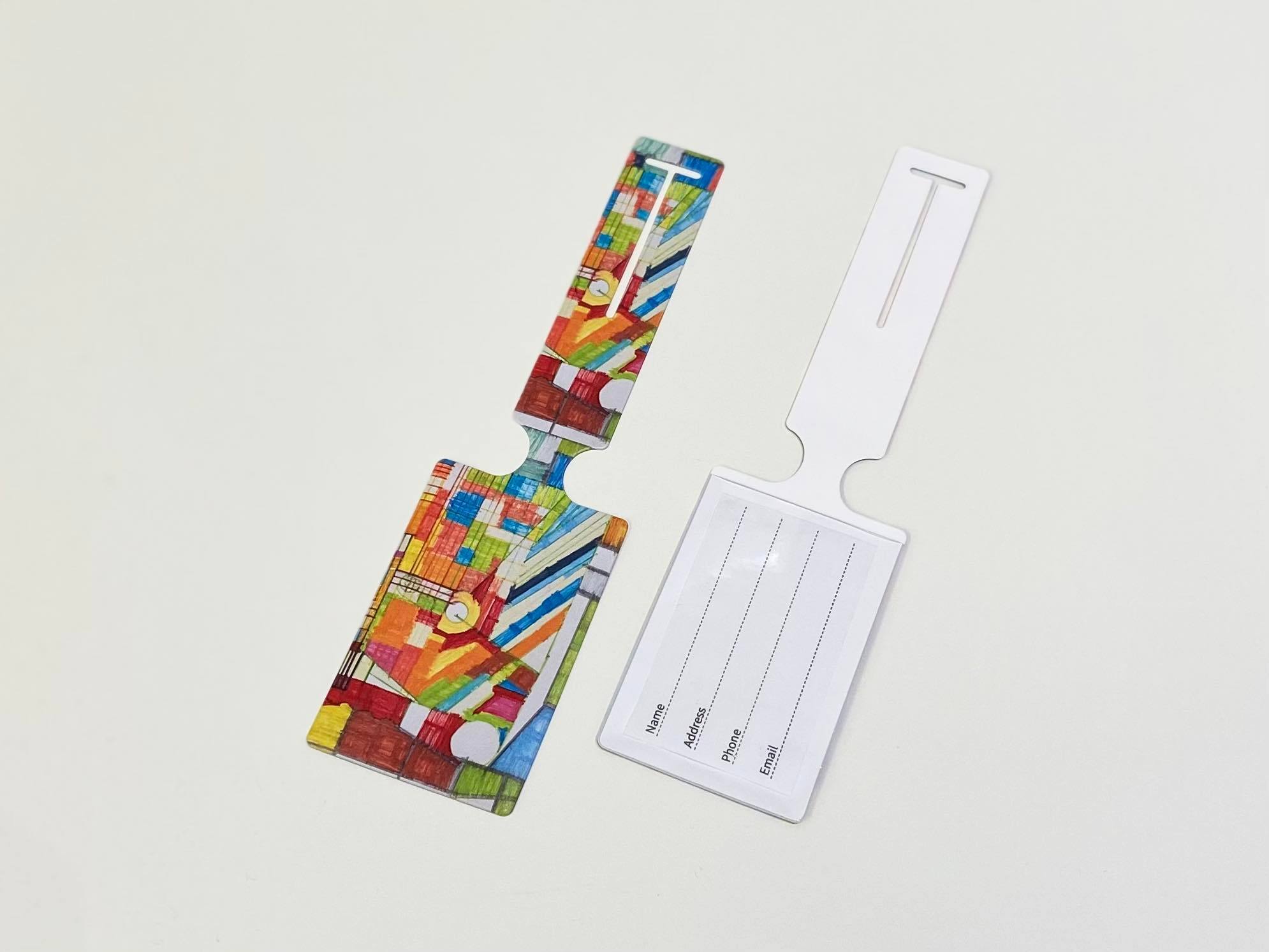 ラゲッジタグとは旅行の時にスーツケースや荷物が迷子にならないよう自分のものだと分かるようにつけたラベルのこと。コラボ台紙の裏面は名前や連絡先を記入できるようになっています。