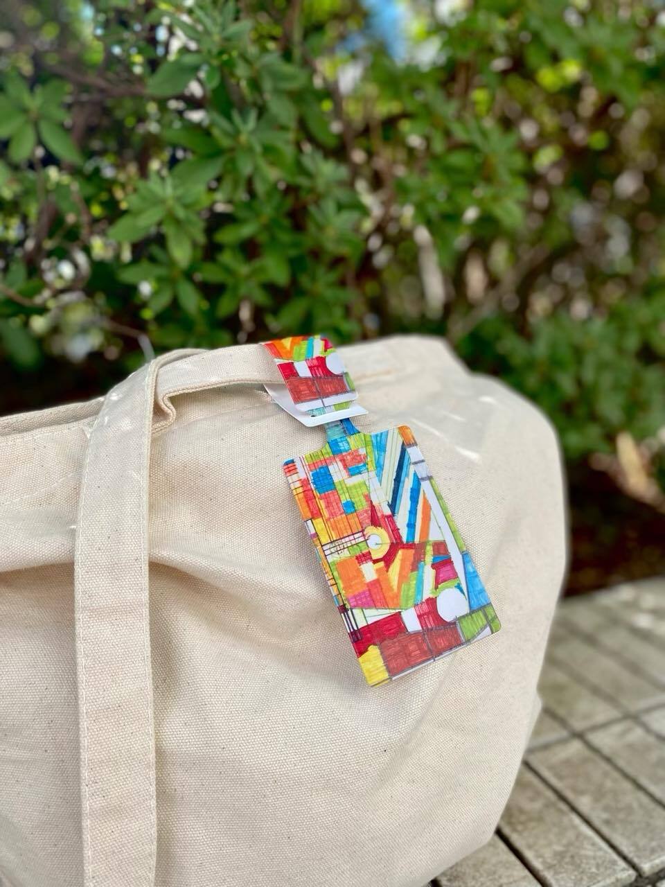 普段のバッグにつけるだけで明るい気持ちになれそうなカラフルなラゲッジタグ。
